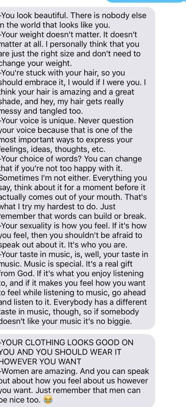 - "Tu valor no se mide por tu apariencia física, hay tanto en ti que brilla más allá de eso."